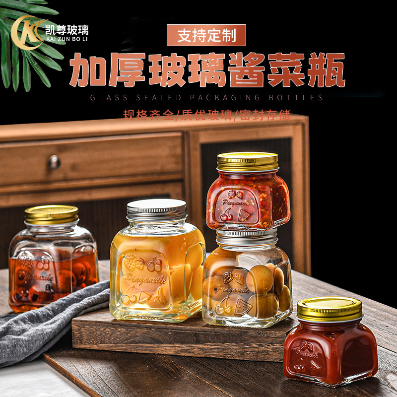 卸売り四方ガラス瓶蜂蜜カプサイソース味噌汁滋包装瓶食品分注密封蓋付き食品缶