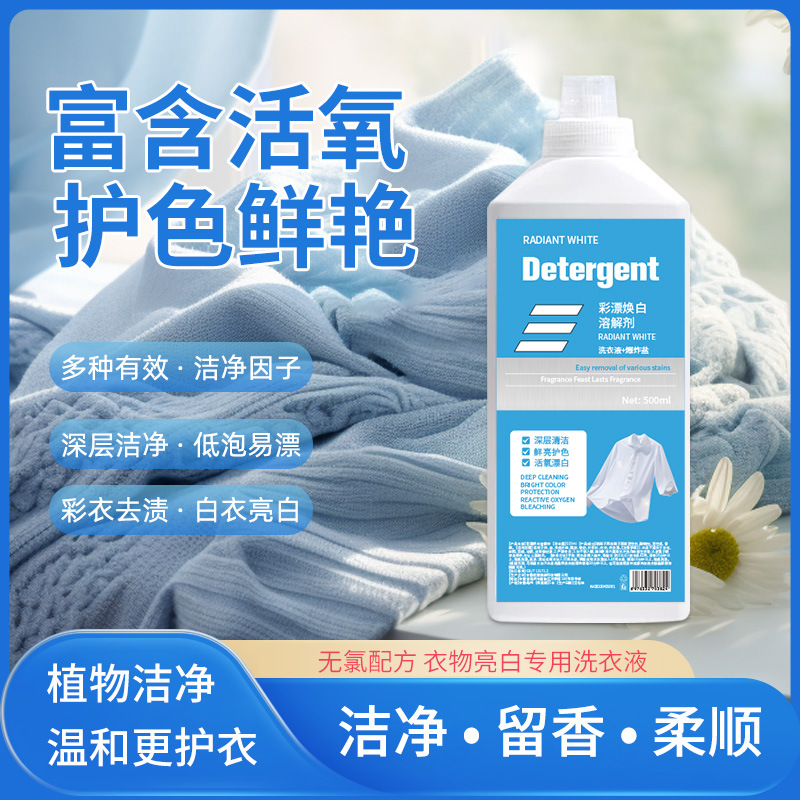 色とりどりの白い溶解液の衣類は汚れを落として黄色の明るい白を取り除きます。