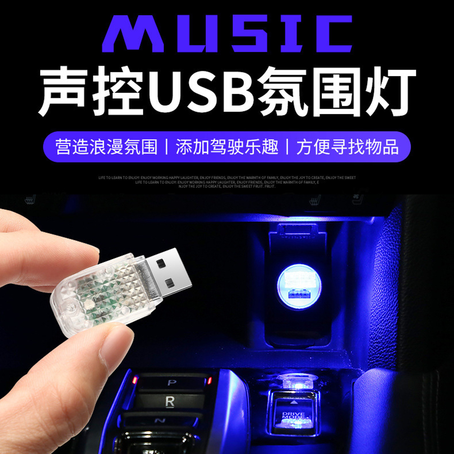 源七色rgb自動車usb雰囲気ランプled車内改造音楽リズムランプ車載usb雰囲気ランプ