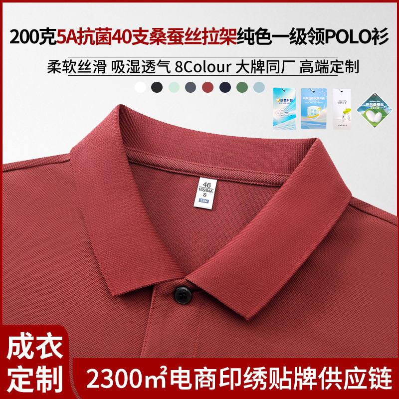200g绢糸プルオーバー珠地ハイエンド折り襟poloシャツファッション半袖tシャツ印字可DIY対応サンプル