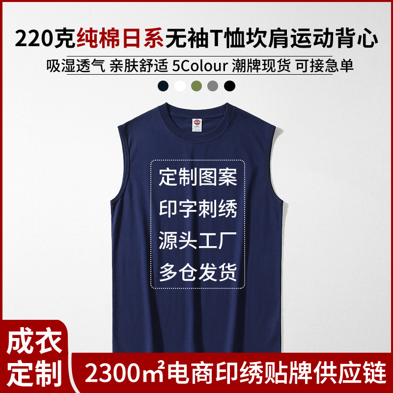ABNT 220g ピュアコットン ルーズ アメリカン ノースリーブ Tシャツ ベスト スポーツ ベスト ベーシック プリント プリントを迅速に追加できます