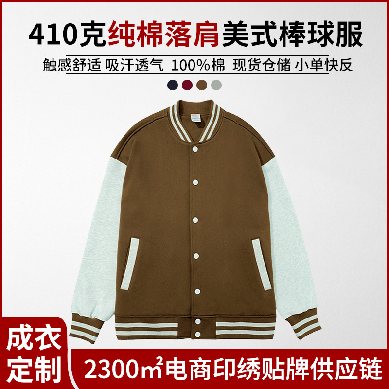 410g秋冬ファッション色合わせ純綿落肩アメリカ野球服クラスコート作業服印字ロゴ刺繍