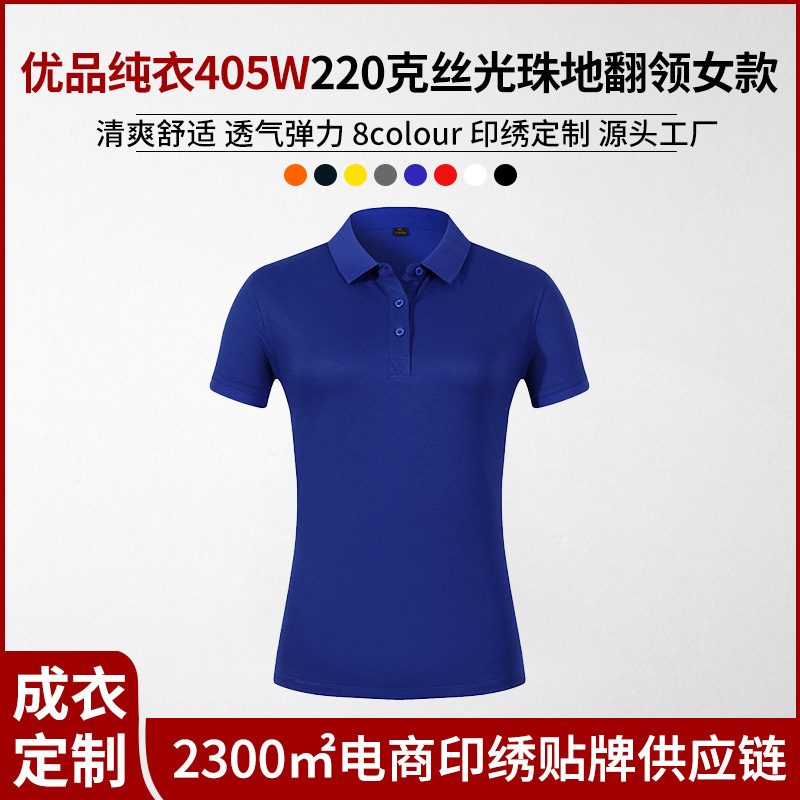 220gシルクビーズ襟半袖レディースポロシャツ潮牌供給企業チーム工衣印ロゴ刺繍