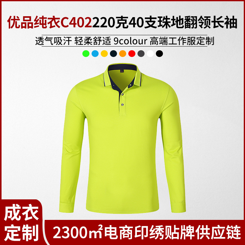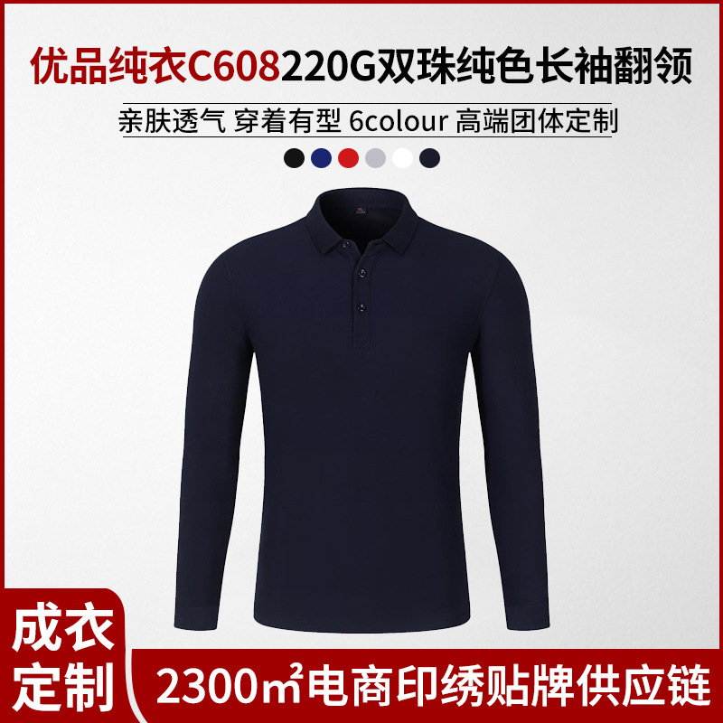 220グラム長袖純綿poloシャツプリント刺繍襟tシャツ企業チーム作業服シャツロゴ