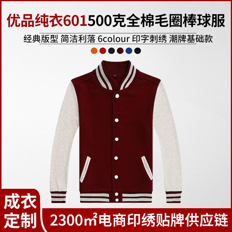 500gの全綿の毛輪の色合わせの野球服のクラス服の団体服の作業服のコートはロゴの刺繍の電気商を印刷します。