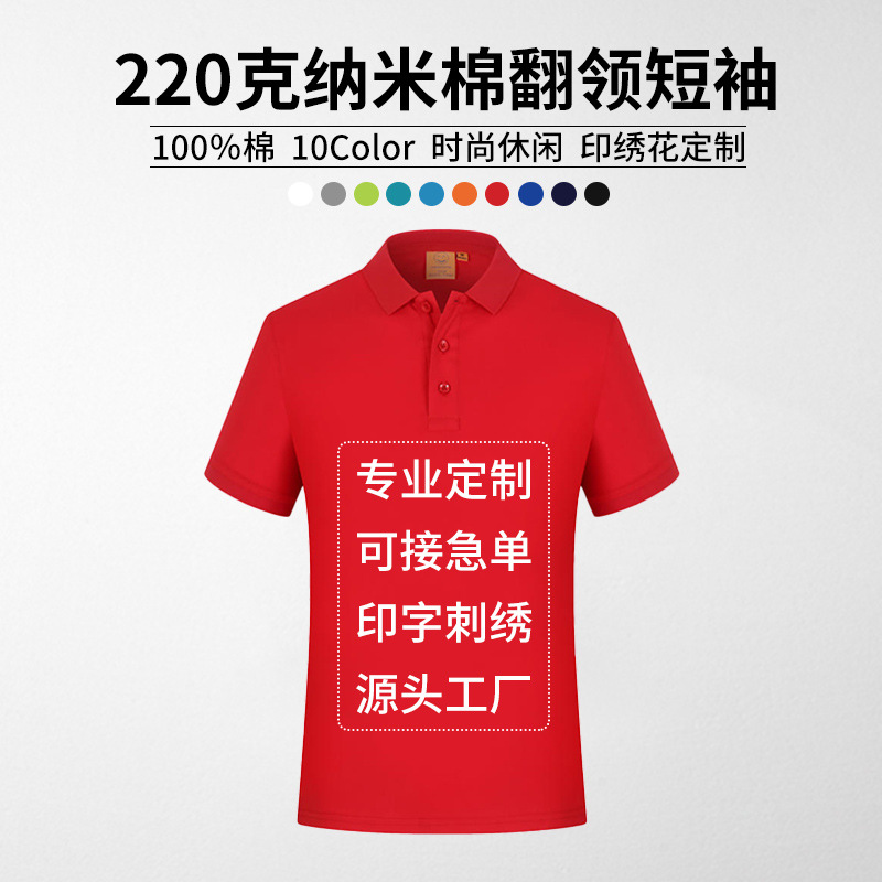 新しい220グラムのナノ綿の襟の半袖の純色の綿のポロシャツの企業の作業服はロゴの文字を印刷します。