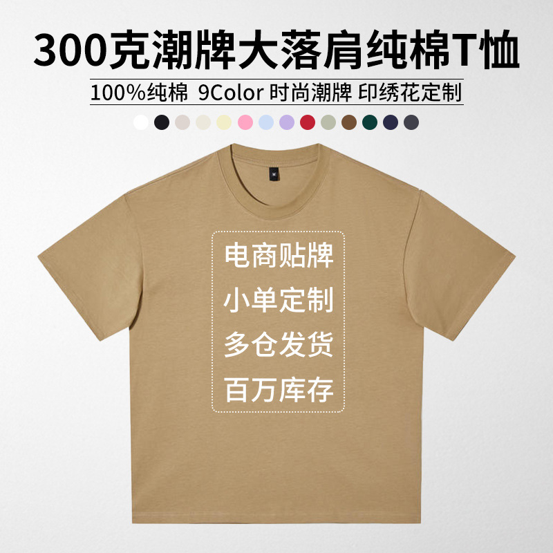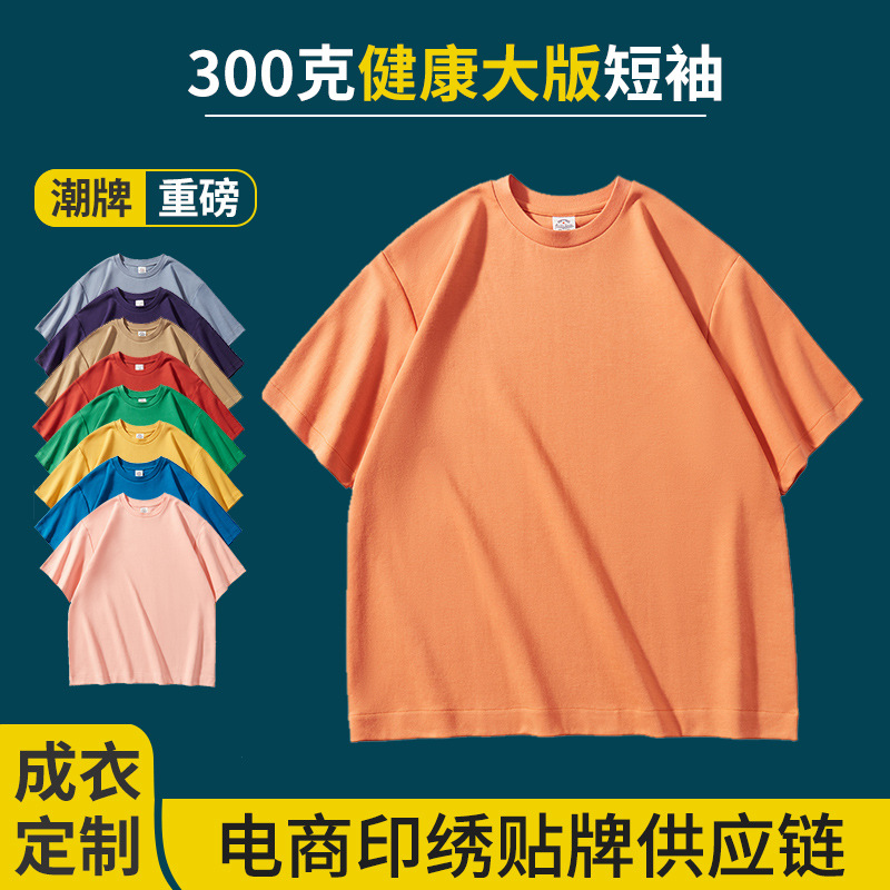 300グラム健康布ゆるい大版半袖潮牌大落肩tシャツ来図印字ロゴ刺繍班服卸売り