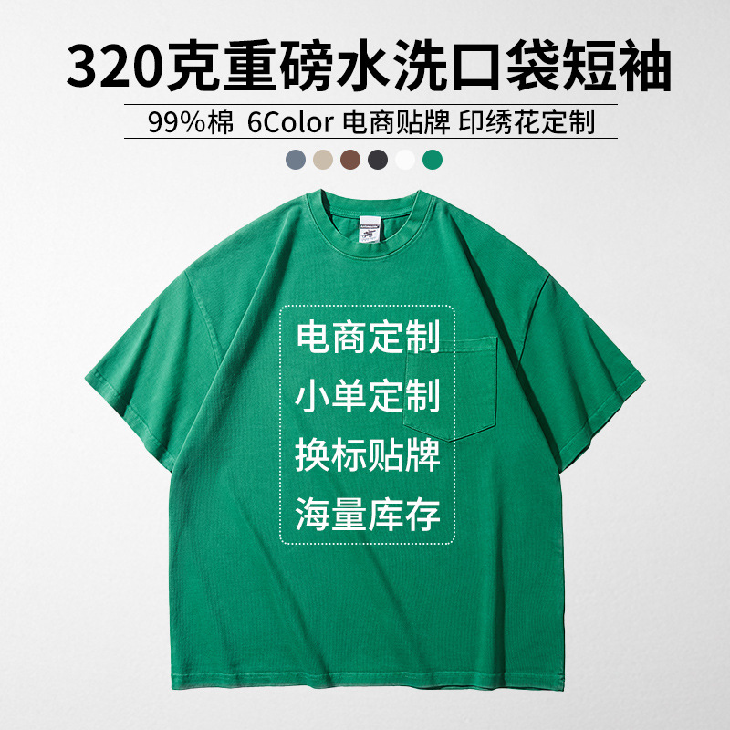320グラム重ポンド水洗ポケット半袖日系ゆるい男女tシャツ潮牌印字卸売り電気商生中継供給