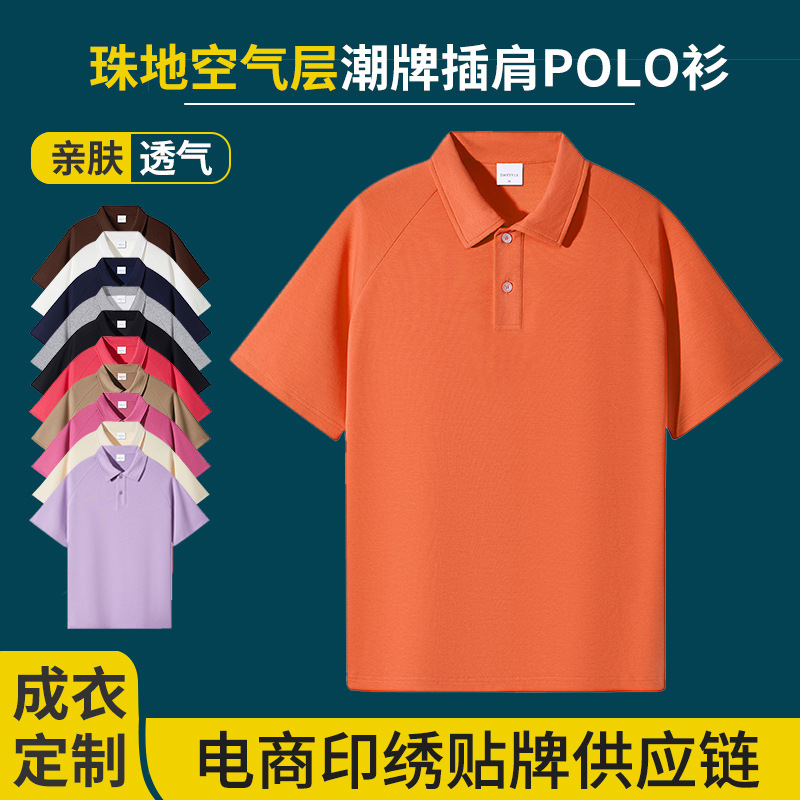 夏230gPOLOシャツプリント刺繍日系香港風純色肩折り襟半袖tシャツDIYプリントロゴ