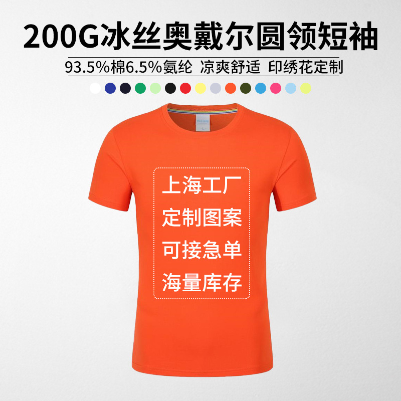 氷糸オーデルカラー丸首tシャツは襟元の純色の基礎男女の半袖団建服を厚くして印刷します。
