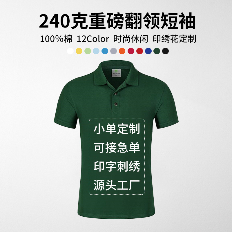 180g折り襟tシャツ印刷広告文化シャツ夏純色空白基礎金半袖poloシャツ印刷図DIY