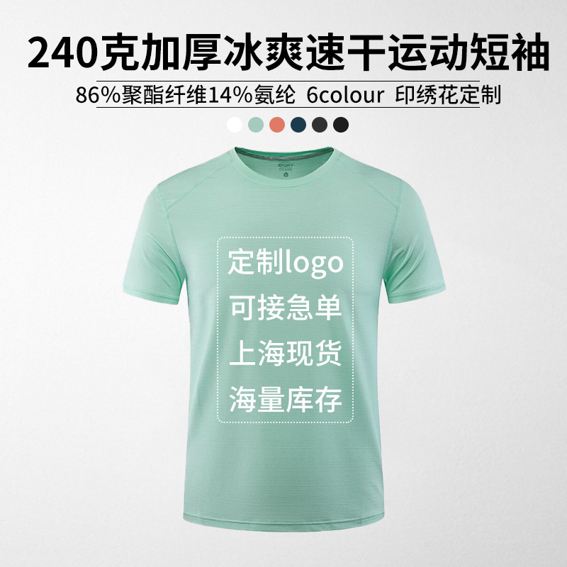 240グラム青年氷爽速乾運動tシャツ純色空白通気半袖ゆったり型ランニングプリント文字