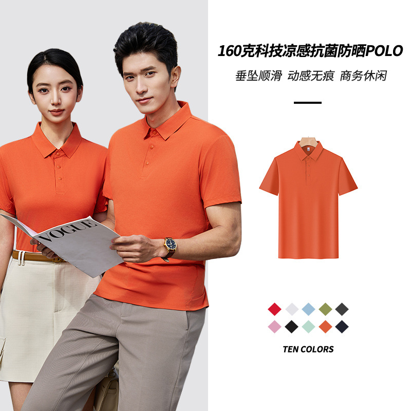 210グラム氷イオン珠地抗菌無痕ポロシャツ男女新品折り襟半袖高級ビジネス服