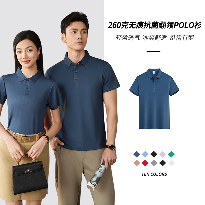 260g シームレス抗菌ラペルポロシャツ 男女兼用 夏 ビジネス カジュアル トップス 吸汗速乾 しわになりにくい