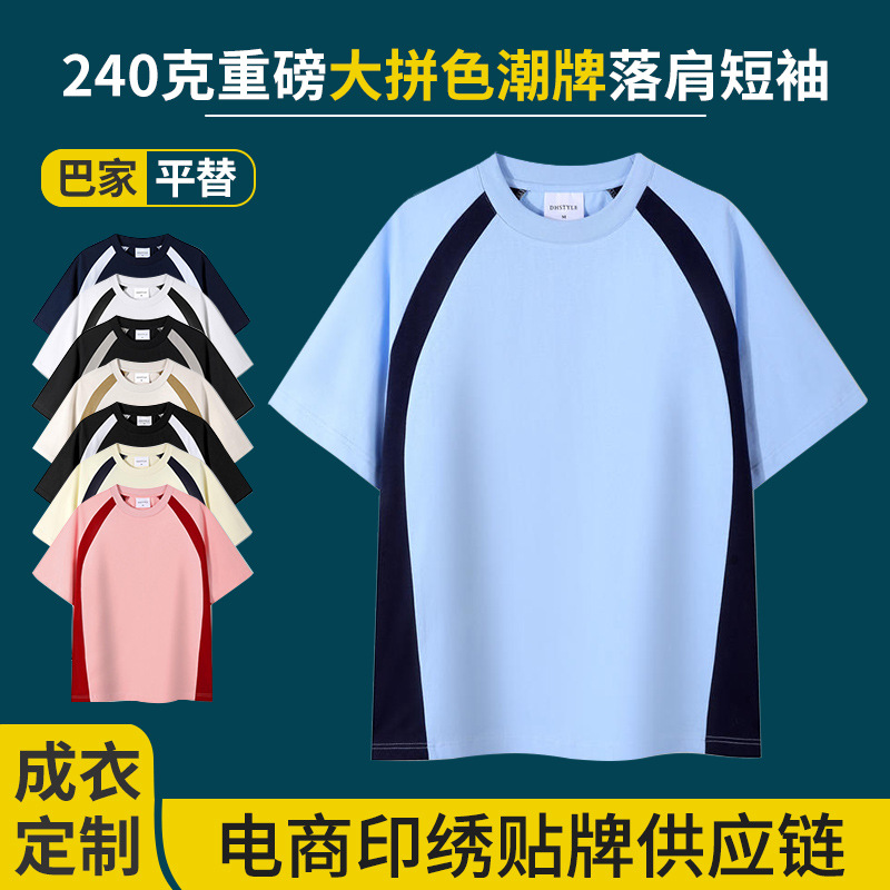 240グラム32本の重いポンドの丸襟の色合わせの巴家の同じ綿のtシャツの半袖の夏の肩の文化のシャツは刺繍を印刷します。