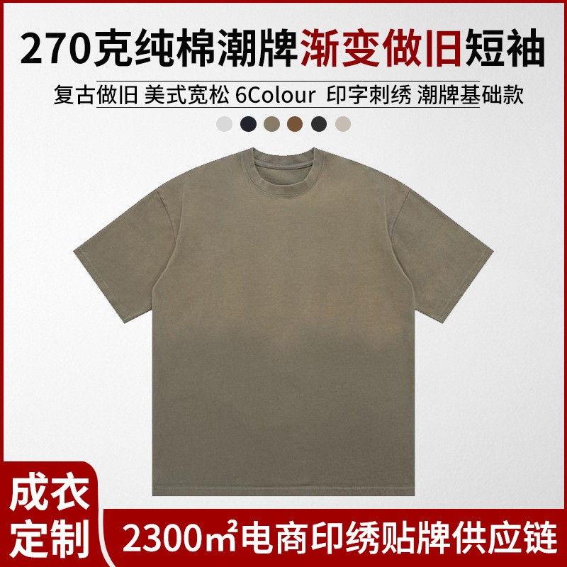 270グラム純綿重ポンド男女グラデーション色は古いtシャツ電気商潮牌ヒップホップ半袖夏高街半袖シャツを作る