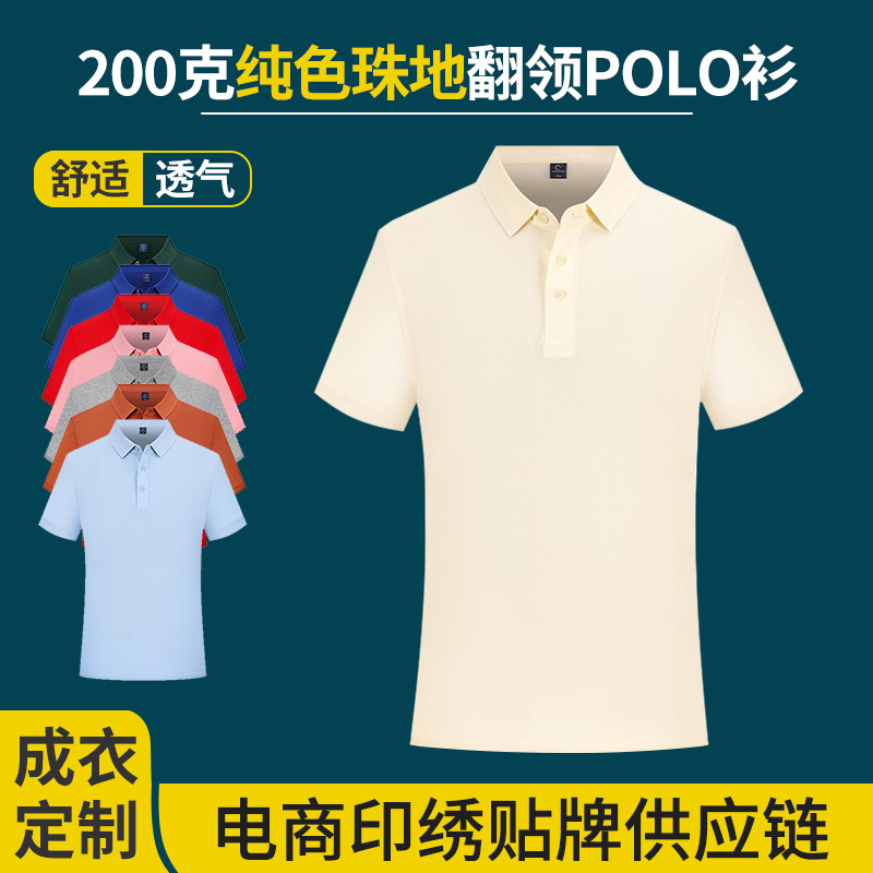 200グラム純色襟poloシャツプリント男女広告シャツ半袖tシャツ作業服団体服印字ロゴ