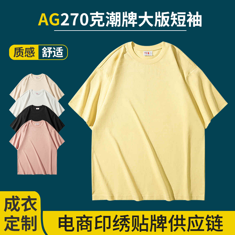 Ag新型270グラム潮牌大版綿半袖tシャツ純色ジャケット生中継ソース文化シャツプリントロゴ
