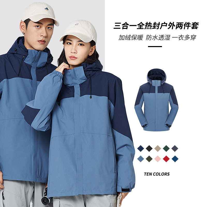 プリント突撃服戸外団建三合一男女取り外し可能コート