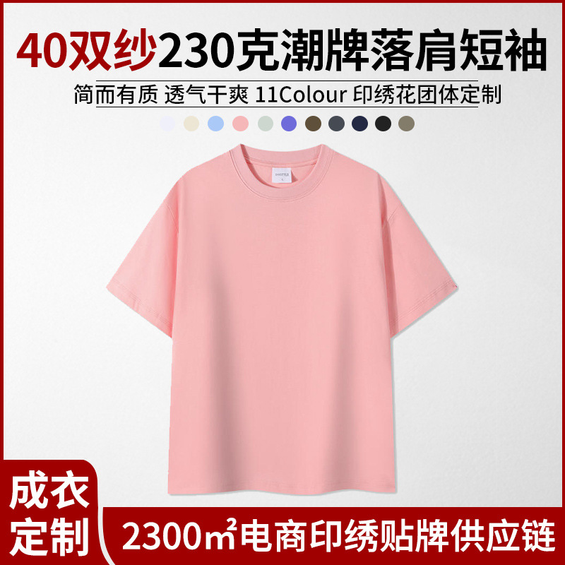 230G丸襟tシャツ純綿重ポンド半袖夏潮牌ゆるいシャツtシャツ団体班服刺繍ロゴ