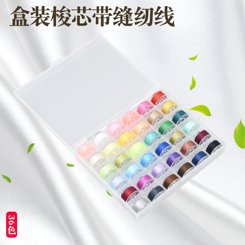 36マス透明プラスチック製ボビンケース36色糸付き定色高速ミシン糸家庭用白黒ボビンセット