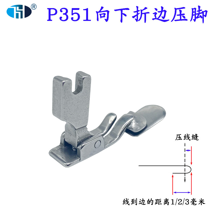洪耀コンピュータ平車ミシンのエッジ押えp351平車はアイロンをかけずにエッジを押さえて足を押えます。