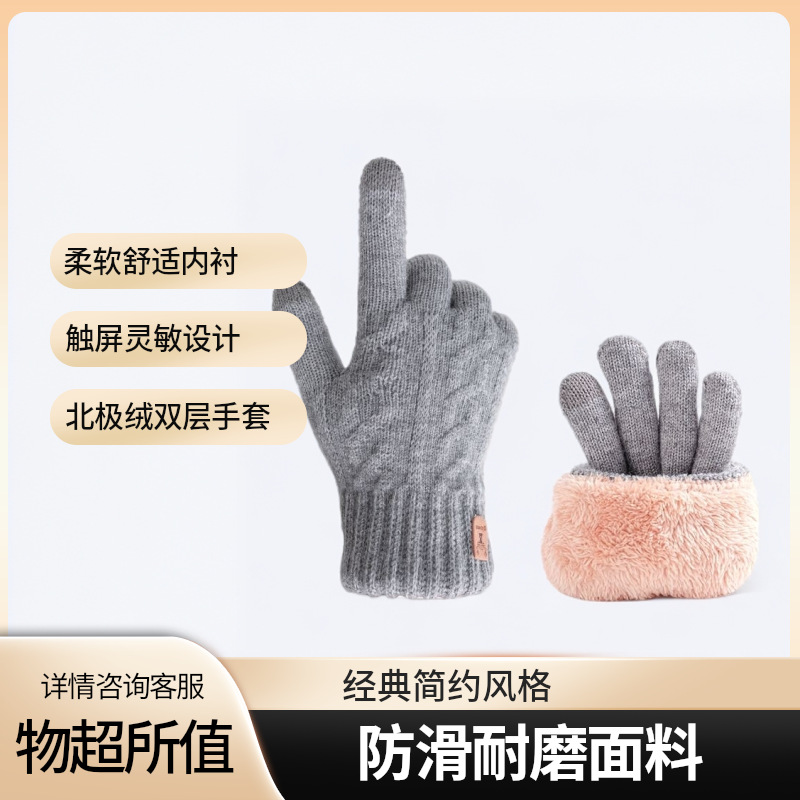 ニットタッチスクリーン手袋男女カップル秋冬保温カップルの毛糸ベルベット指滑り止め手袋