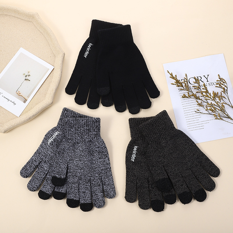 メンズ手袋 5本指手袋 無地ラベル フィンガーレス タッチスクリーン 暖かいウールニット 防寒手袋 韓国版