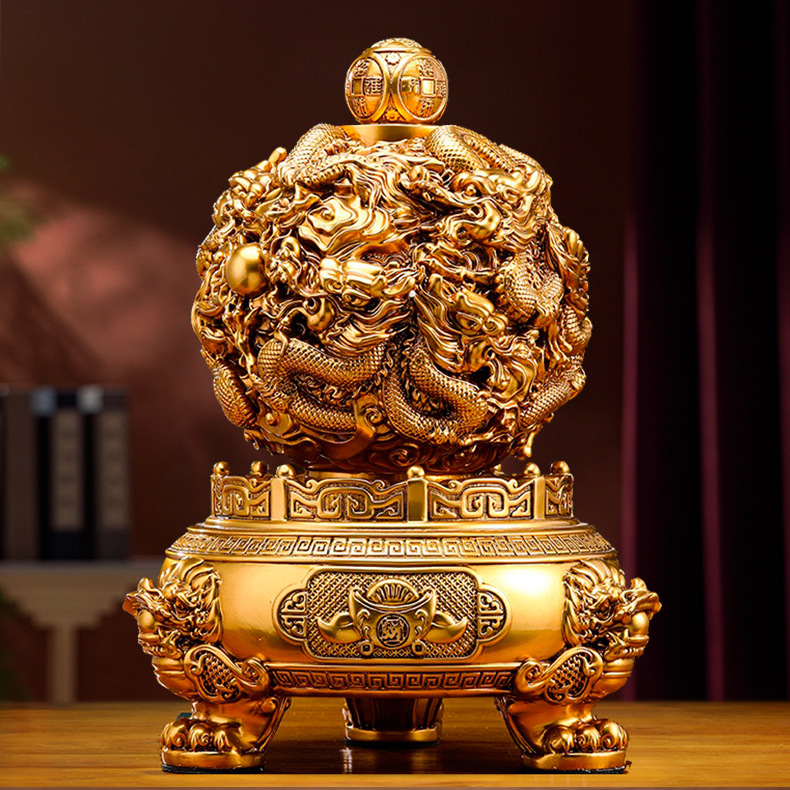 樹脂の九竜の玉の時に来て古銅色の贈り物の工芸品の置物を運転して保険銀行の贈り物の現物を販売します。