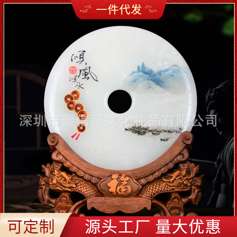 平安は玉の筆筒の家庭を掛けて保険銀行業の贈り物を飾っています。