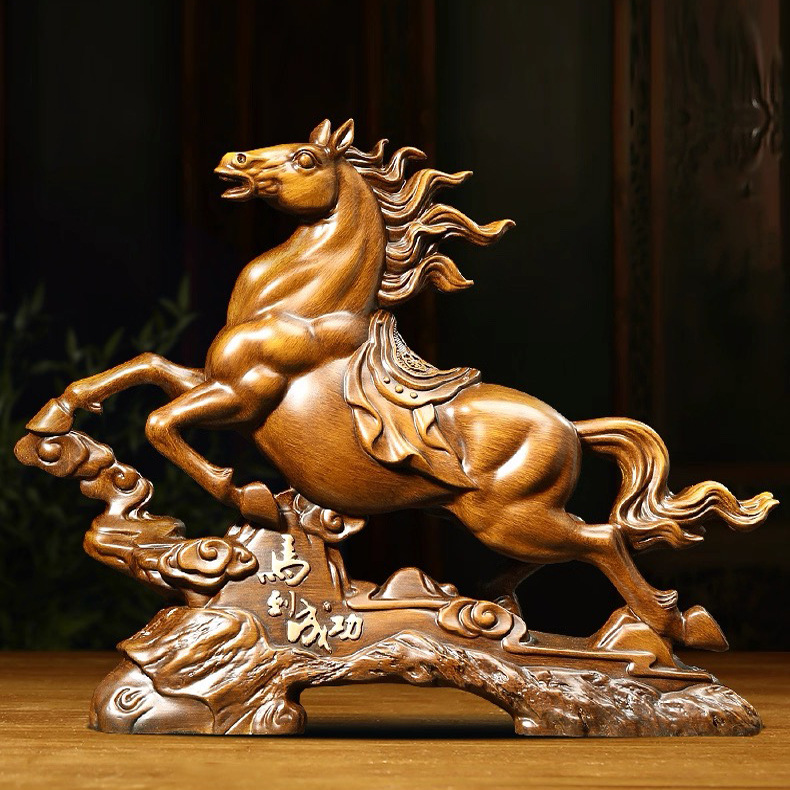 生肖馬絨毛砂金工芸品の車の置物は成功しました。
