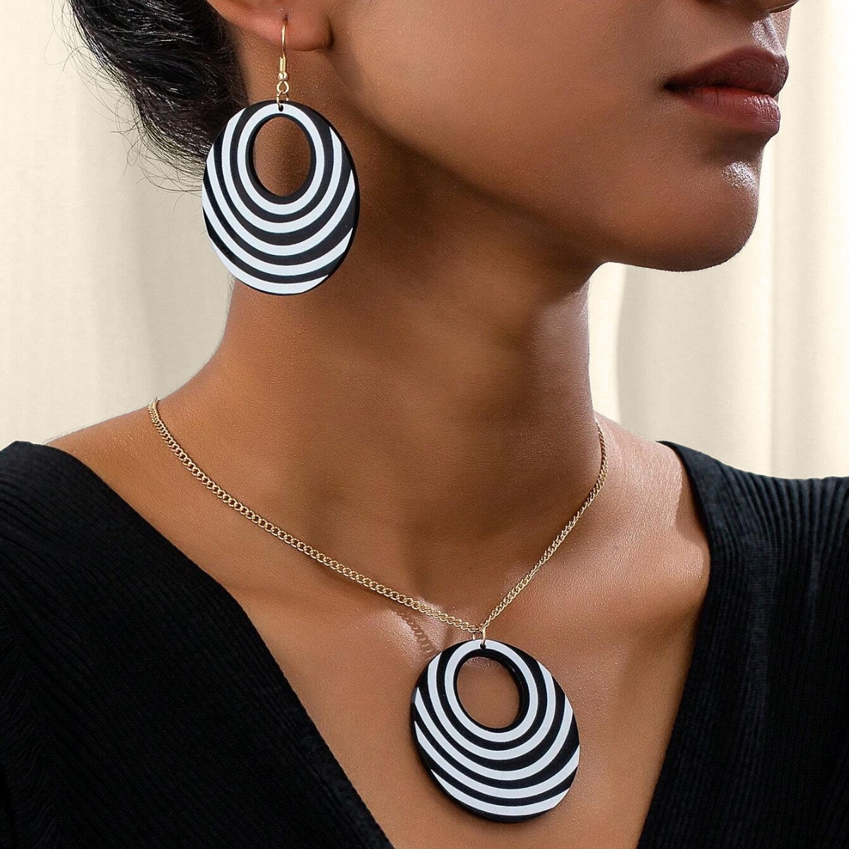 欧米の国境を越えた商品の供給源ボヘミアン風ファッション透かし彫りの丸いイヤリングの白黒のシマウマの紋様のペンダントのネックレスのスーツ