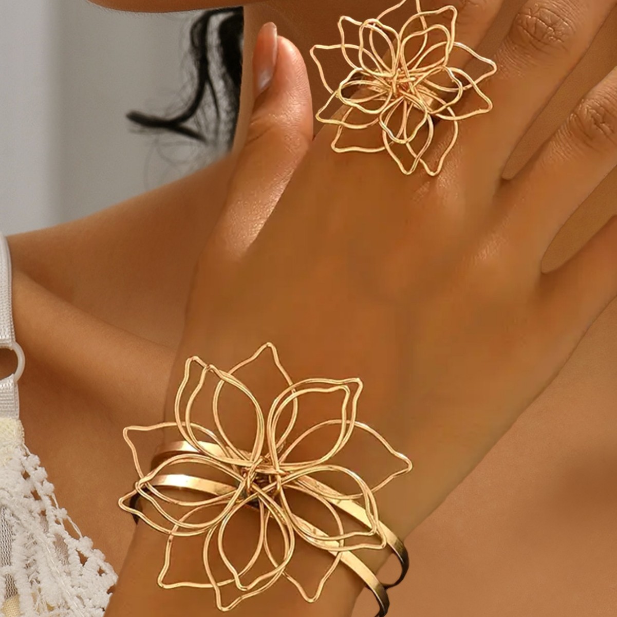 欧米の国境を越えたソースは誇張して透かし彫りの線を編んで花の指輪の腕輪のスーツの開口部を編みます。