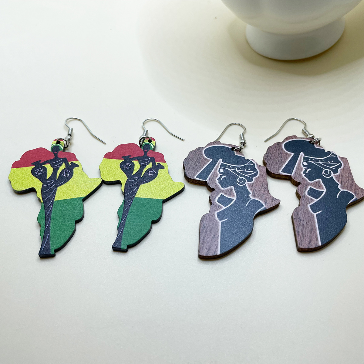 欧米のクロスボーダーのアクリルの木のプリントの方のアフリカの地図のイヤリングの女子学生の顔のイヤリングのアイデアの復古の耳飾り