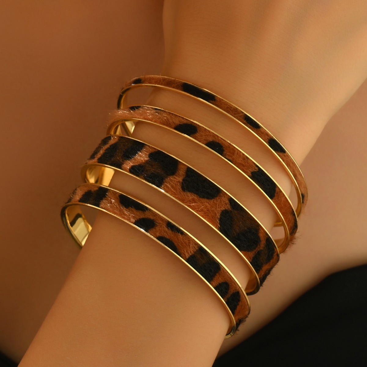 ゴシックスタイルダークシリーズ Y2K ヒョウ柄ブレスレット不規則なスタッキングブレスレットセット女性のホットガールストリートインジュエリー