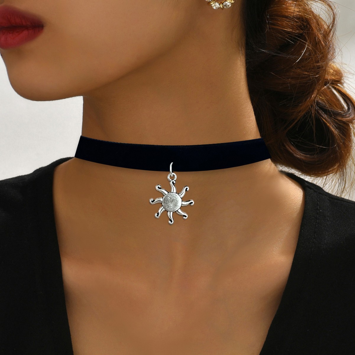 欧米国境を越えたファッションシンプルな個性的な黒い首輪レトロなシンプルな銀色のスパイラル太陽鎖骨ネックレス