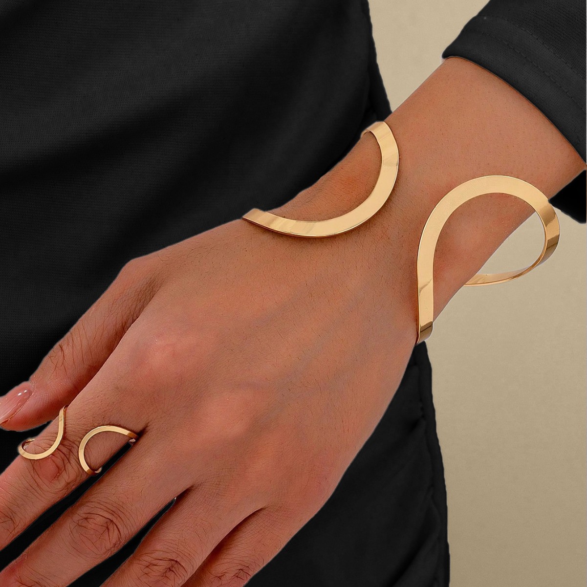 欧米の国境を越えたファッションの極めてシンプルなブレスレットの幾何学チェーンの開口指輪セットの休暇の手のアクセサリー
