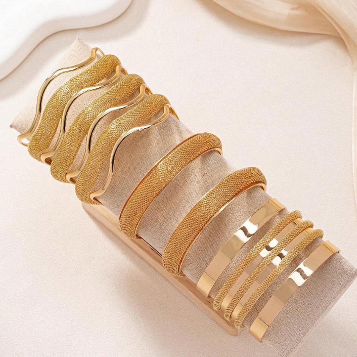 クロスボーダー多層網網チェーン編み光面開口手環波線網チェーン鉄線シンプル金色ブレスレット