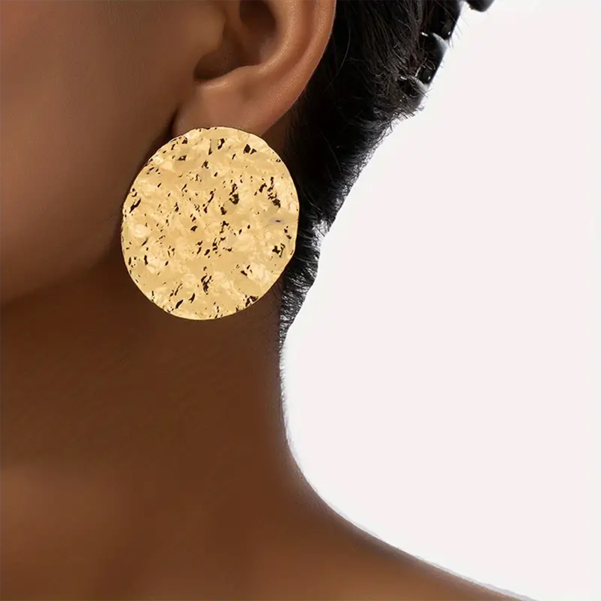欧米の国境を越えた金色と銀色の質感の丸いピアスファッションの洗練されたシンプルな幾何学的耳飾り