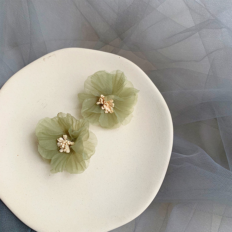日韓の超仙の復古のオリーブの緑の花のピアスは誇張して清新です。