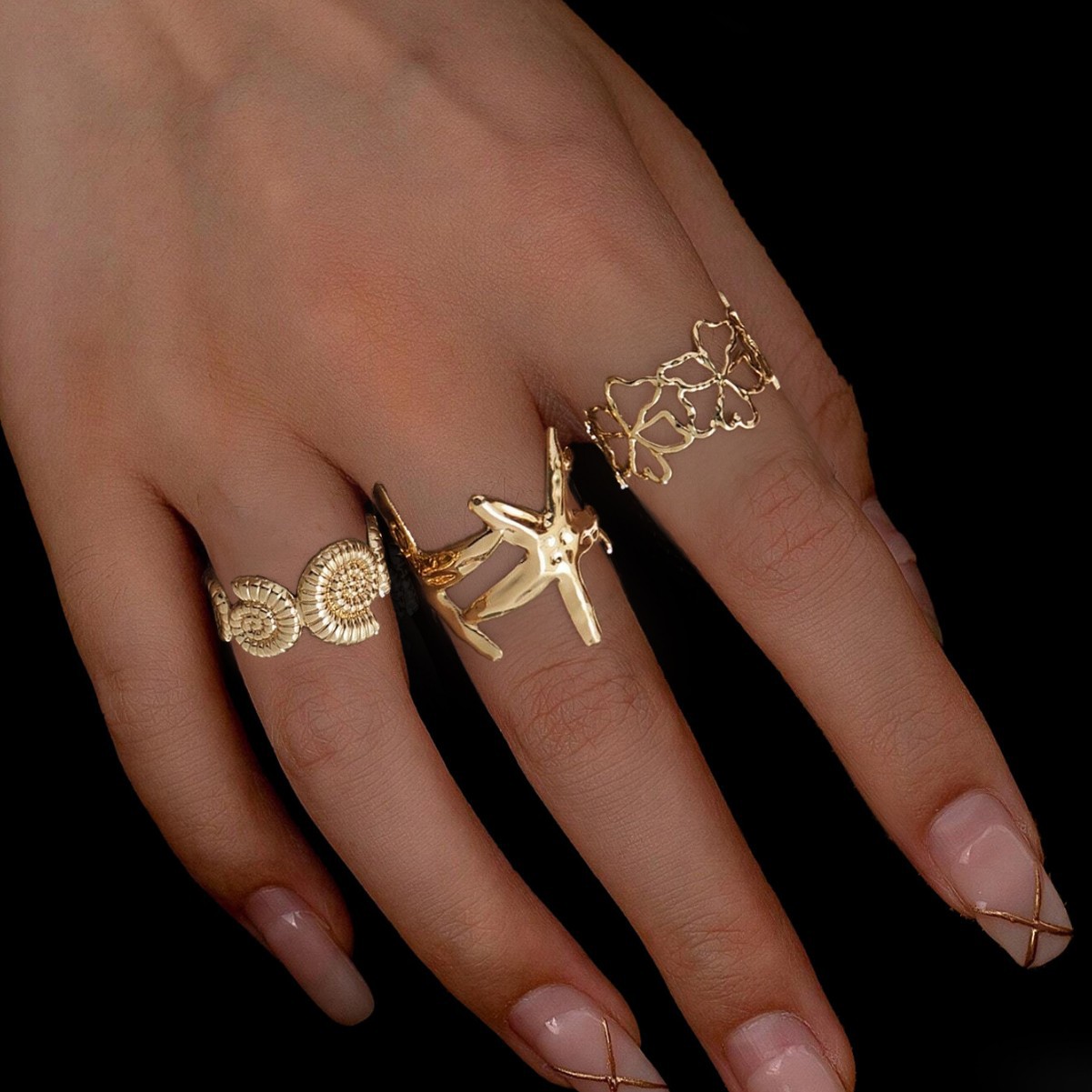 ヨーロッパとアメリカのクロスボーダーサプライメタル海洋生物法螺貝ヒトデ熱帯花リングセットオープンリング女性用