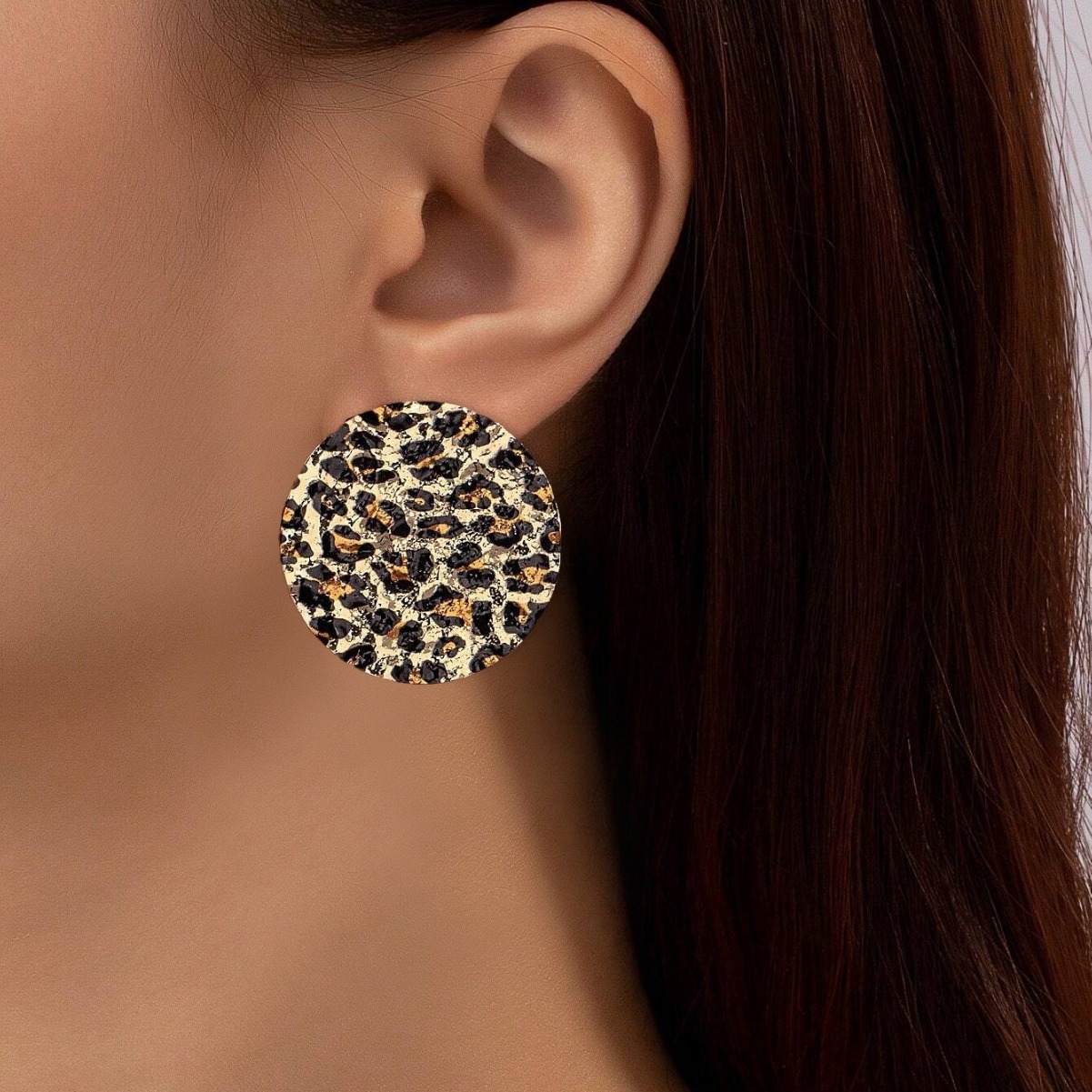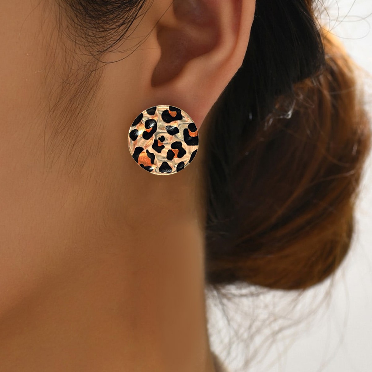 欧米の国境を越えた商品の丸いしわのピアスの不規則なヒョウ柄のプリントのファッションのシンプルな金属のイヤリングの日常の女性