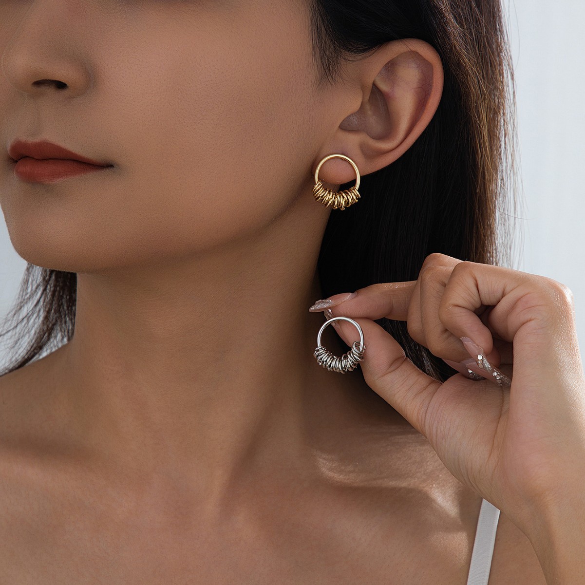 メタリックエレガントレトロシンプル幾何学イヤリング小さくて多用途なラウンドイヤリング女性のハイエンドイヤリングニッチイヤリング