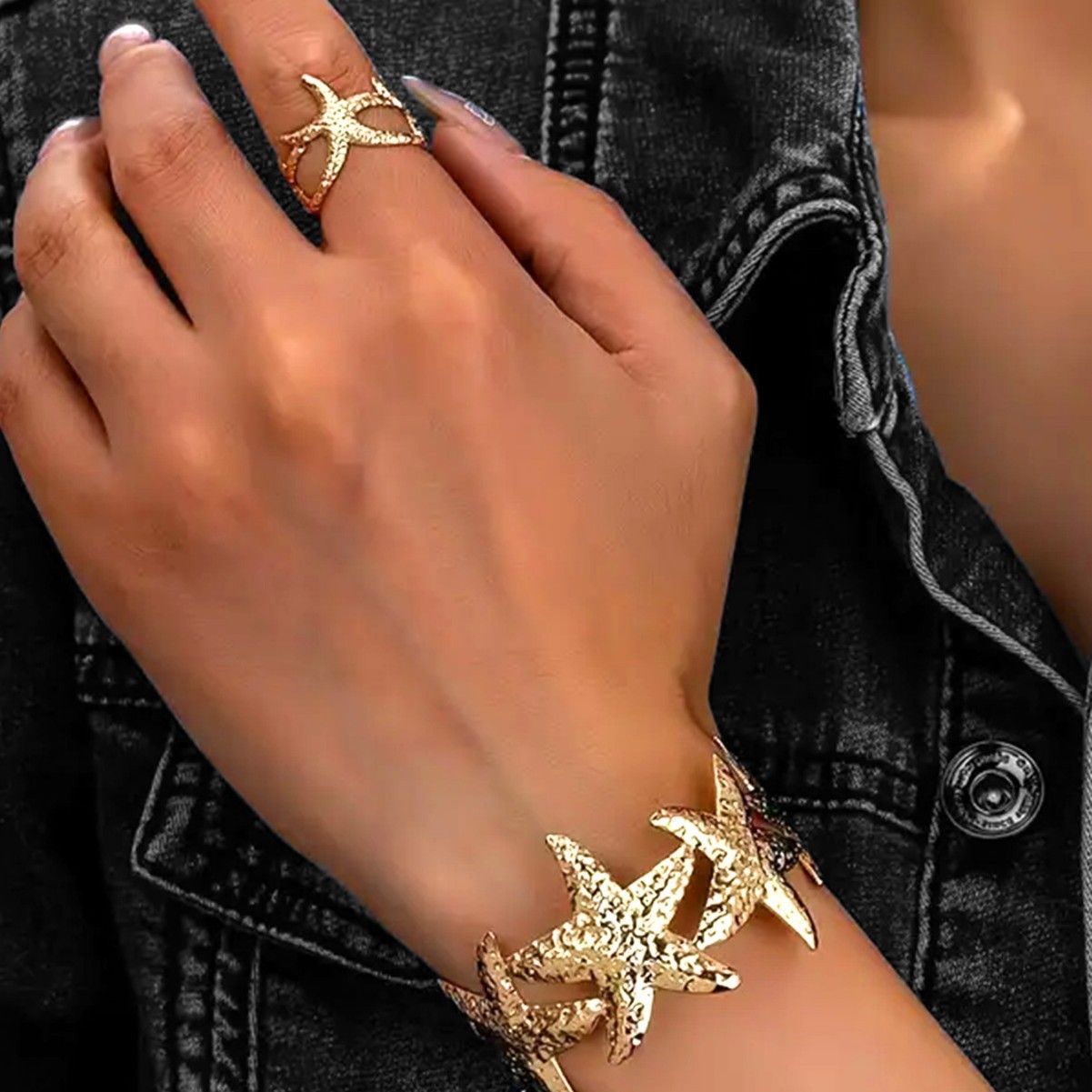 欧米の国境を越えたファッションの個性が誇張されている指輪の海星の形のブレスレットの指輪のセットの休暇の海洋の風の女性