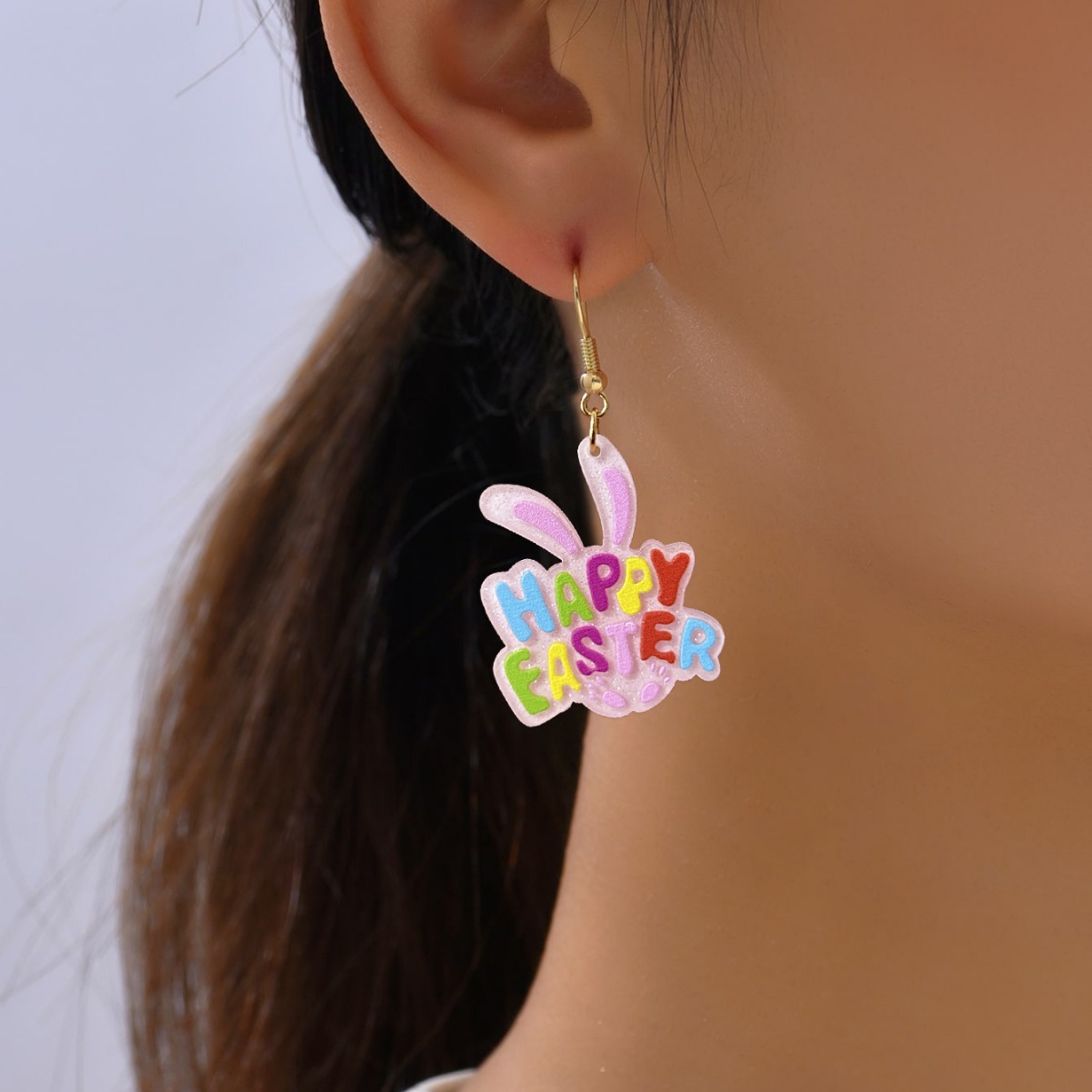 イースターのピンクの漫画のイヤリングのスパンコールのウサギの形のカラーの落書きのイヤリングのドーパミンの少女の街頭の耳飾り