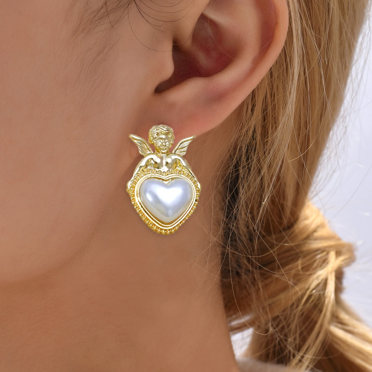 欧米の国境を越えたソースの復古小衆天使像ピアス真珠愛イヤリング優雅バレンタインデー耳飾り