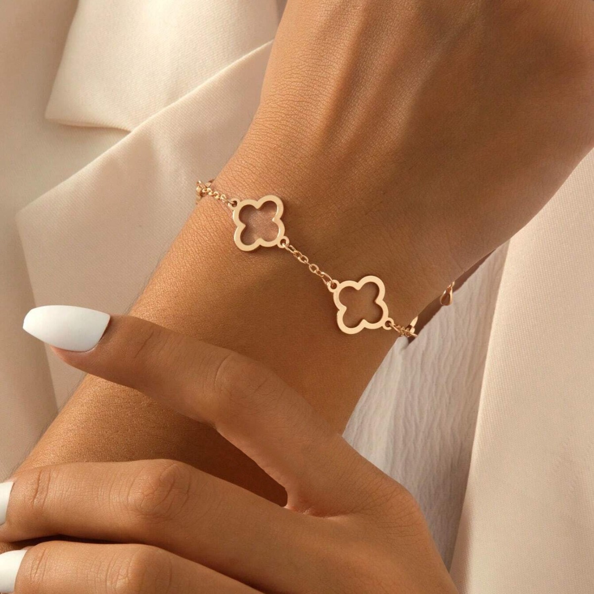 欧米越境供給 シンプルでおしゃれな四つ葉のクローバーチェーンブレスレット エレガントな透かし彫りの四つ葉のクローバー カップルブレスレット