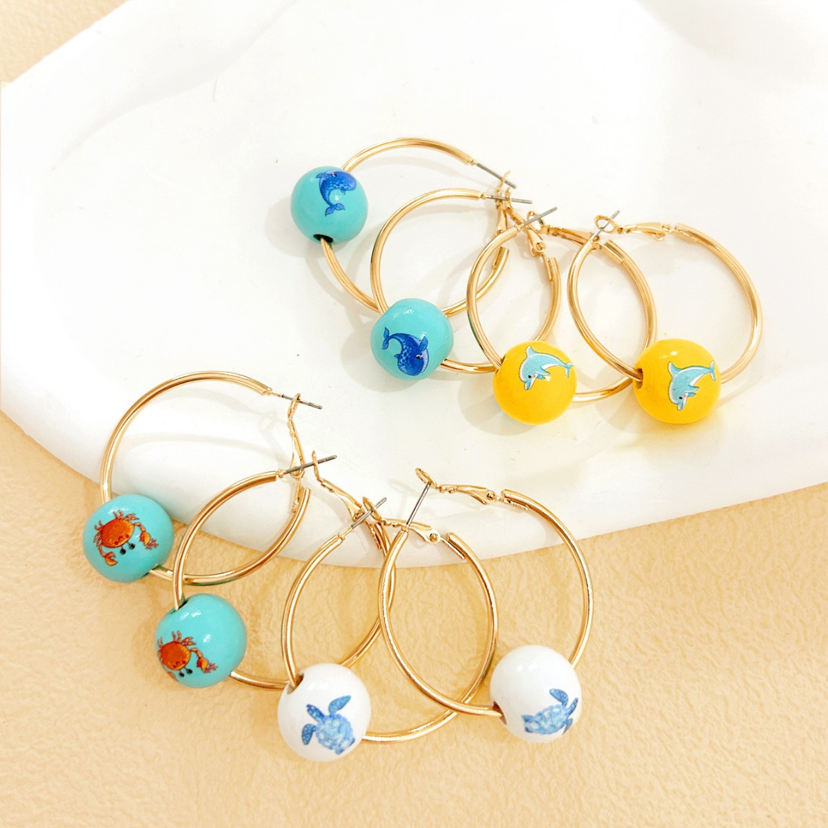 欧米の国境を越えてかわいいアニメカニウミガメのリング耳輪海洋シリーズクジライルカのイヤリングセット