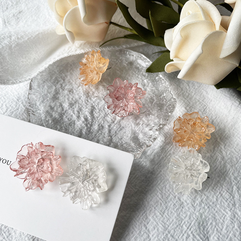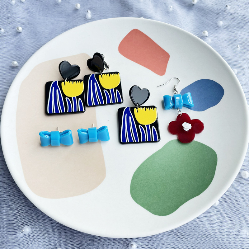 非対称ピアスinsアクリルチューリップ花イヤリング少女蝶ネクタイ甘い耳クリップペンダント耳穴なし