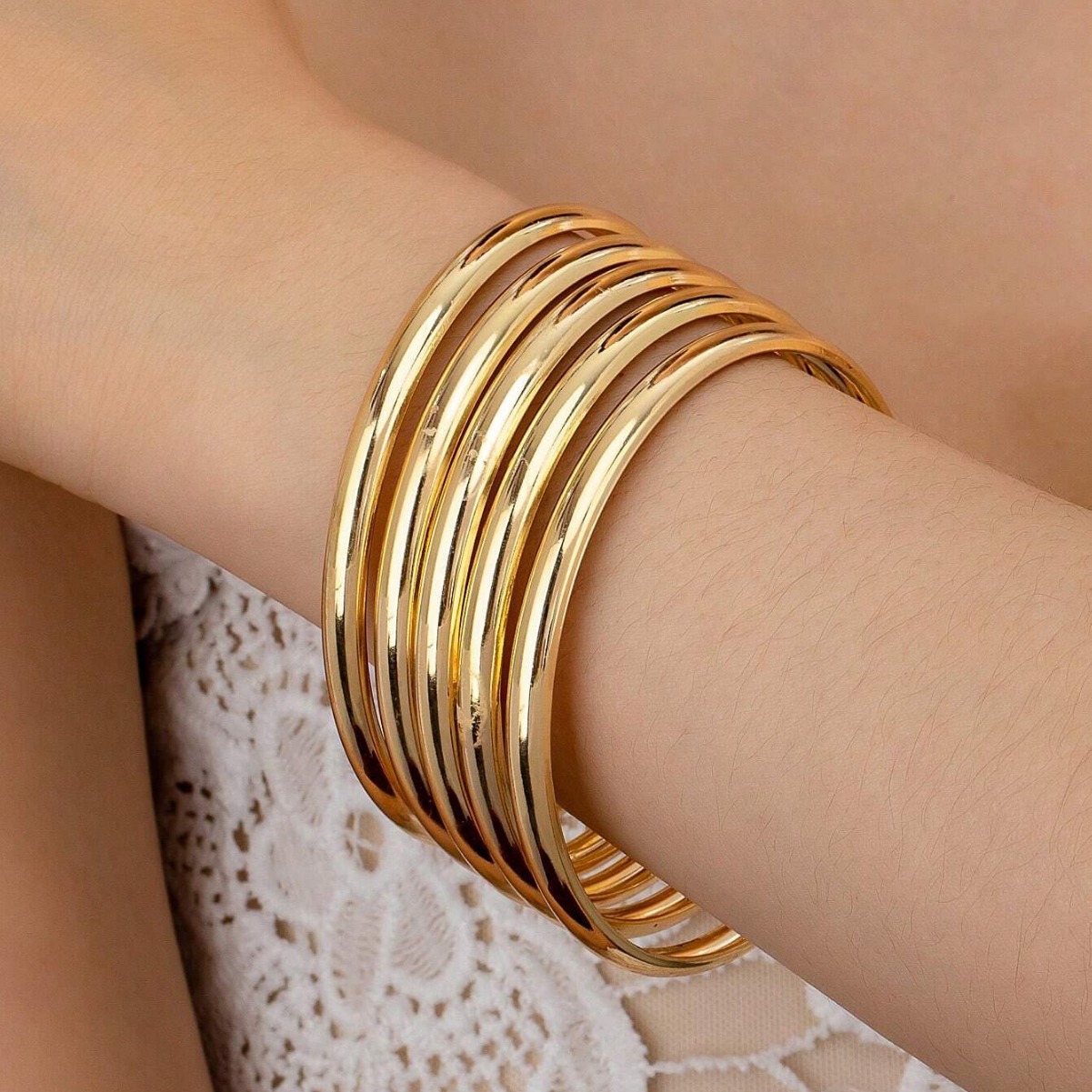 欧米の国境を越えて商品を供給する5つの金色の光沢のあるブレスレットはアクセサリーのブレスレットを重ねて身につけます。